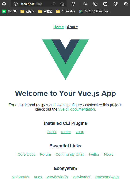 最后,复制网址到浏览器访问,可以看到默认项目界面,创建完成