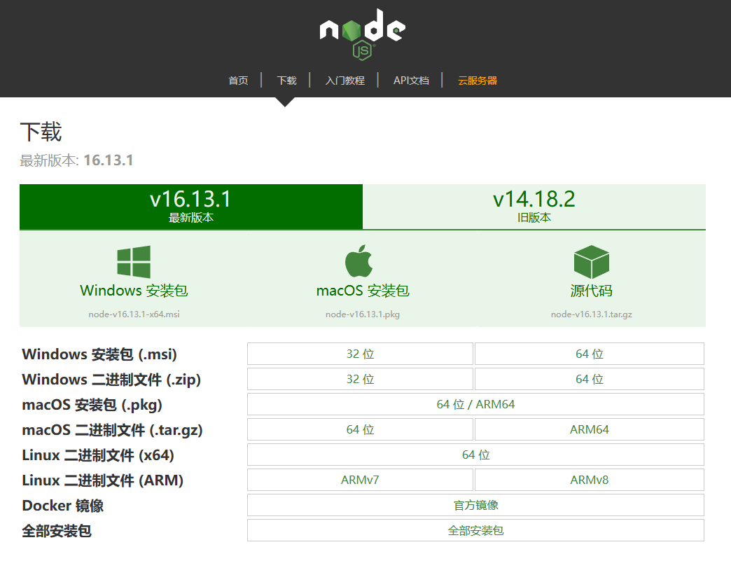 若没有安装,可以到nodejs官网下载与电脑适配的node.js文件