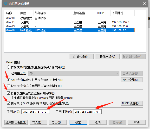 想要将虚拟机分配到网段192.168.5.0-192.168.5.255