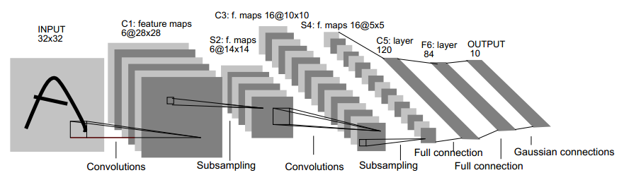 原始图像的大小决定了输入向量的尺寸,隐层由C-层(特征提取层)和S-层(下采样层)组成,每层均包含多个平面。C1层神经元提取图像的局部特征,因此每个神经元都与前一层的局部感受野(也就是局部输入窗口)相连。C1层中各平面(由神经元构成)提取图像中不同的局部特征,如边缘特征,上下左右方向特征等,C1层中的输入是有由上一层局部窗口的数值和连接的权值的加权和(也就是卷积,后面会具体解释为什么是卷积),然后通过一个激活函数(如sigmoid 函数,反正切函数)得到C1层的输出,接下来S2层是下采样层,简单来书,由4个点下采样为1个点,也就是4个数的加权平均。换句话说,就是我们把2*2的像素缩小成为一个像素,某种意义上来说可以认识是图像处理中的模糊。然后按照这个C—S的结构继续构成隐层,当然这些隐层的连接都是局部相连的。同时有人会问了,例如S2和C3层具体要怎么连接呢,为什么会从6张变成16张特征图呢。C3层的特征图是由S2层图像的感受野和对应权值的卷积后,通过随机的组合而形成的,也就意味着S2层和C3层并不像C1层和S2层那样是一一对应的。但当我们感受野的大小和图像一样时,我们经过特征提取后就变成一个像素了,这里我们开始使用全连接(这样才能完整的把特征保留)。