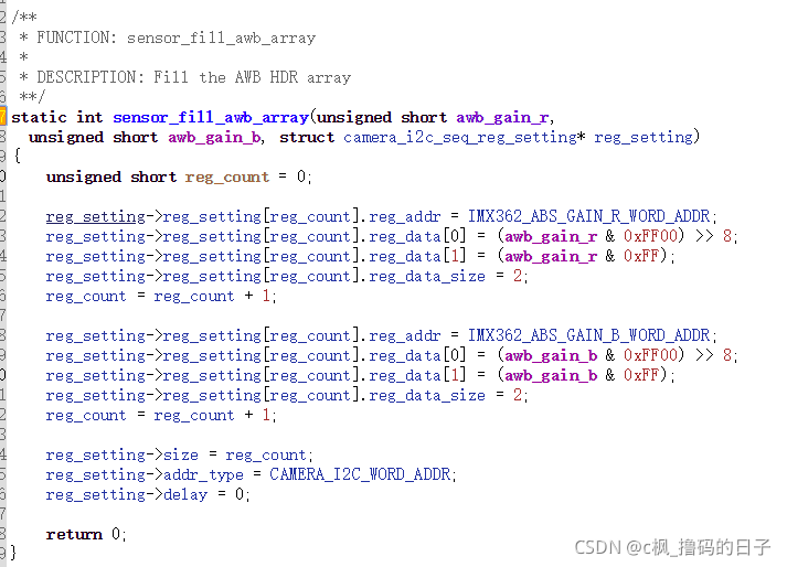 sensor_fill_awb_array:填充HDR对应的寄存器和地址