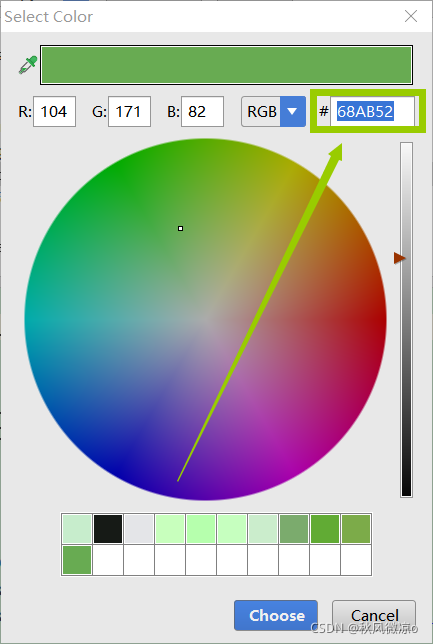 2. 设置选中文本背景色:Editor->Selection background->选中Background,颜色置为68AB52