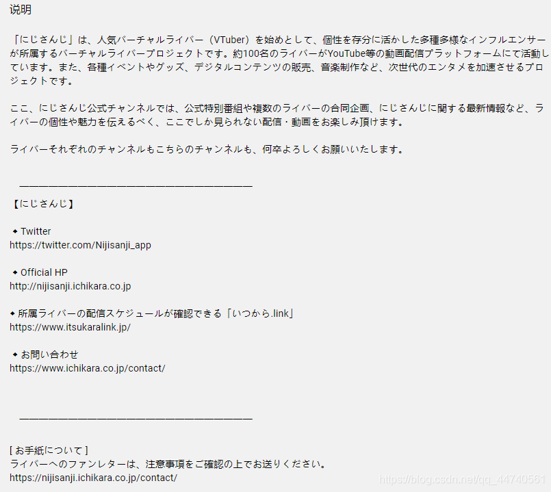 分析后决定共爬取以下类别的数据(以用户にじさんじ为例):