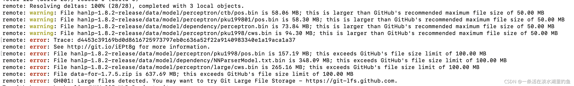 看着这一行行红字和黄字,我一早就是知道是文件太大,但是上述的方法在我这里都没有起作用,好在报错提示中提到了git-lfs,好吧,下载git-lfs吧。