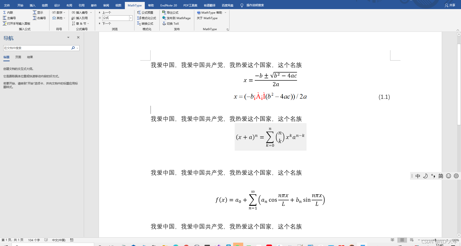 2 打几行文字 中间穿插几个公式