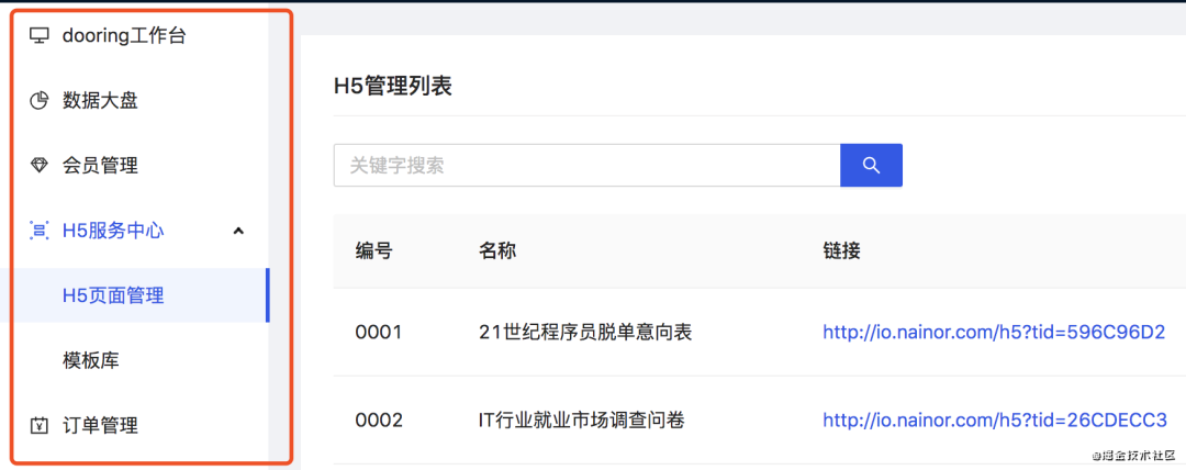 通过以上方式我们就可以渲染出任何层级的菜单了, 在H5-Dooring后台中效果如下: 如果没有权限需求, 大家可以直接用以上方案实现任何动态层级菜单. 接下来我们来实现具有权限功能的动态菜单.