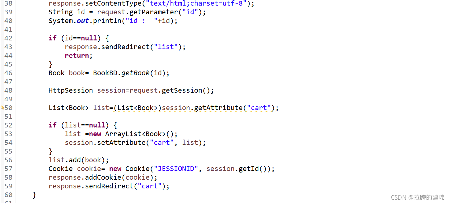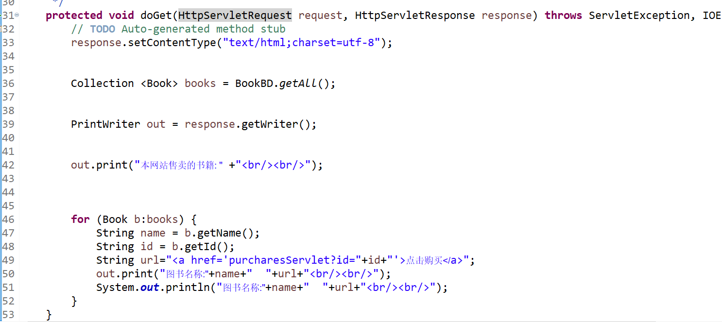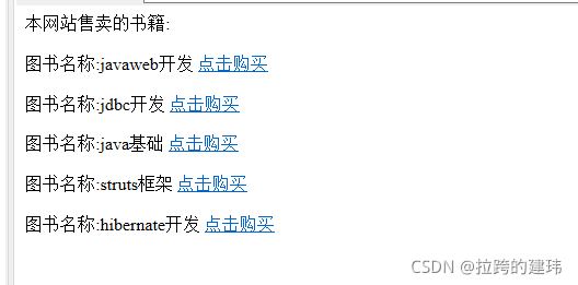 1.创建一个名为ListBookServlet的类,用于操作单击 "购买" 链接,就可以把书加进购物车;