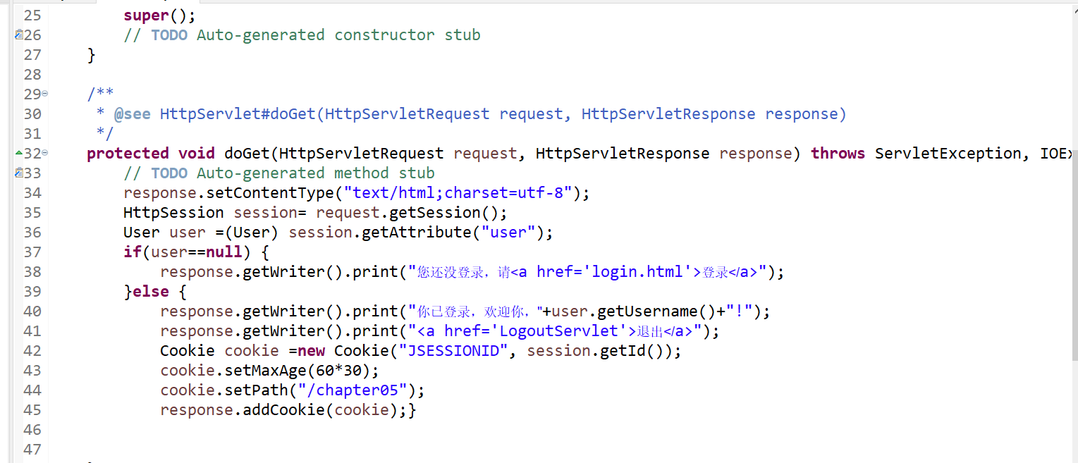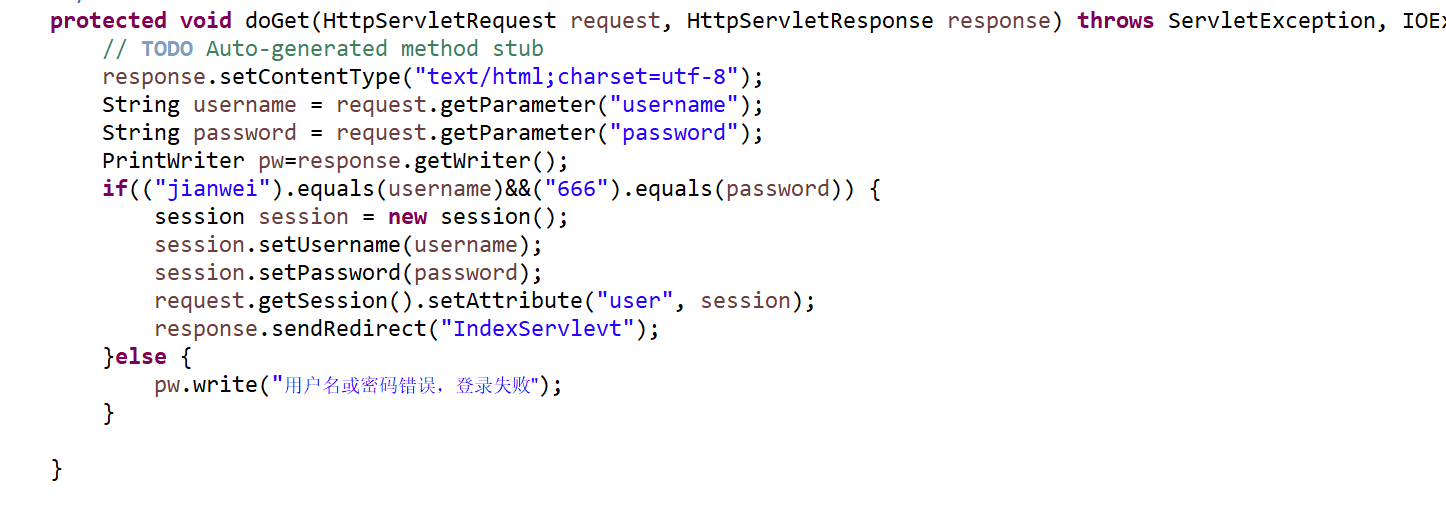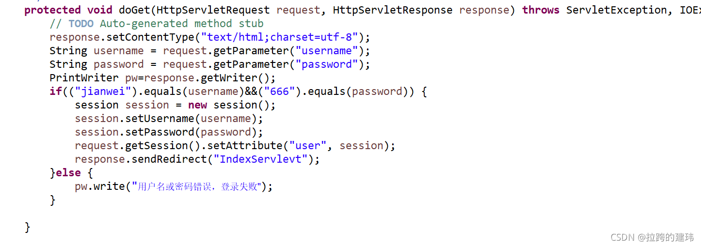 2.创建indexServlet类显示网站首页,如果用户没有登陆,那么首页界面提示用户登录,否则,显示用户已经登录信息,判断用户是否真的登录: