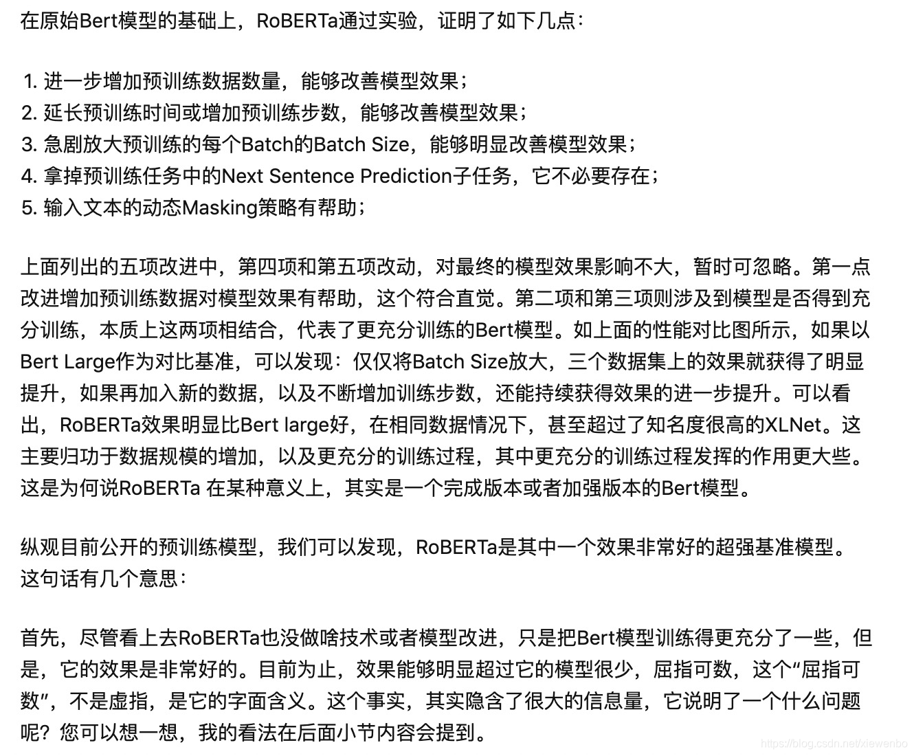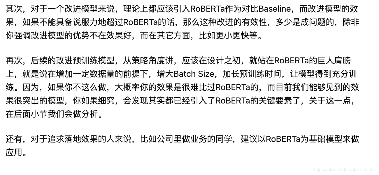 因此本文提出了Sentence-order prediction (SOP)来取代NSP。具体来说,其正例与NSP相同,但负例是通过选择一篇文档中的两个连续的句子并将它们的顺序交换构造的。这样两个句子就会有相同的话题,模型学习到的就更多是句子间的连贯性。