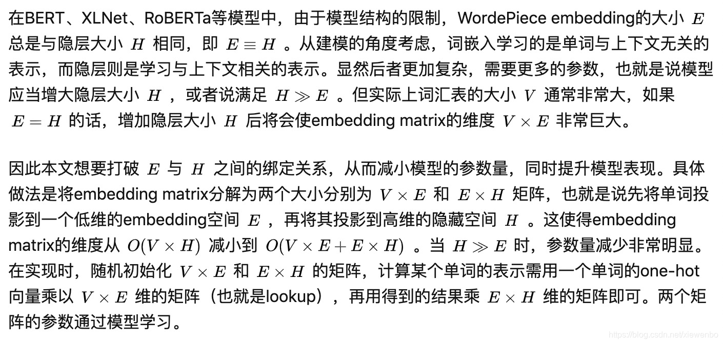 除了减少模型参数外,本外还对BERT的预训练任务Next-sentence prediction (NSP)进行了改进。在BERT中,NSP任务的正例是文章中连续的两个句子,而负例则是从两篇文档中各选一个句子构造而成。在先前的研究中,已经证明NSP是并不是一个合适的预训练任务。本文推测其原因是模型在判断两个句子的关系时不仅考虑了两个句子之间的连贯性(coherence),还会考虑到两个句子的话题(topic)。而两篇文档的话题通常不同,模型会更多的通过话题去分析两个句子的关系,而不是句子间的连贯性,这使得NSP任务变成了一个相对简单的任务。