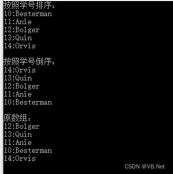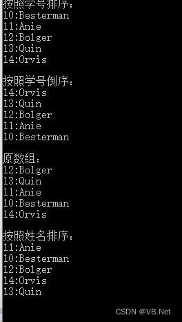 这里使用的是Array的Public Shared Sub Sort(Of T) ( array As T(), comparison As Comparison(Of T) )方法,使用到了Comparison(Of T) 委托,使用如下的声明: