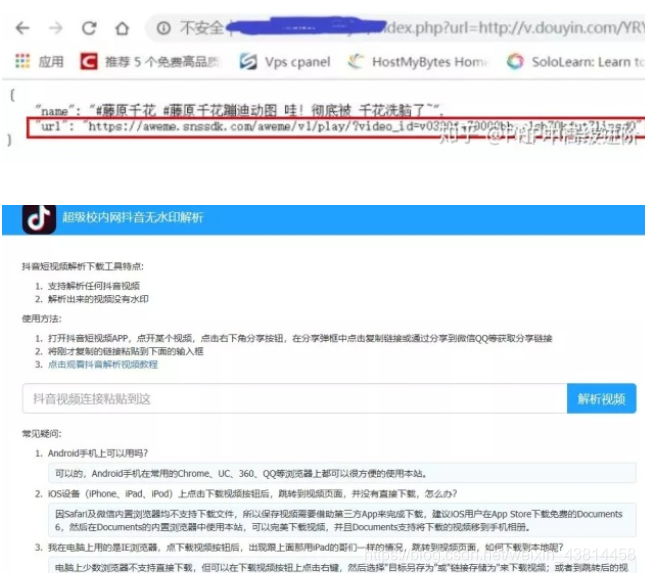 点击跳转后的网页一个是标题 一个是视频无水印的链接。