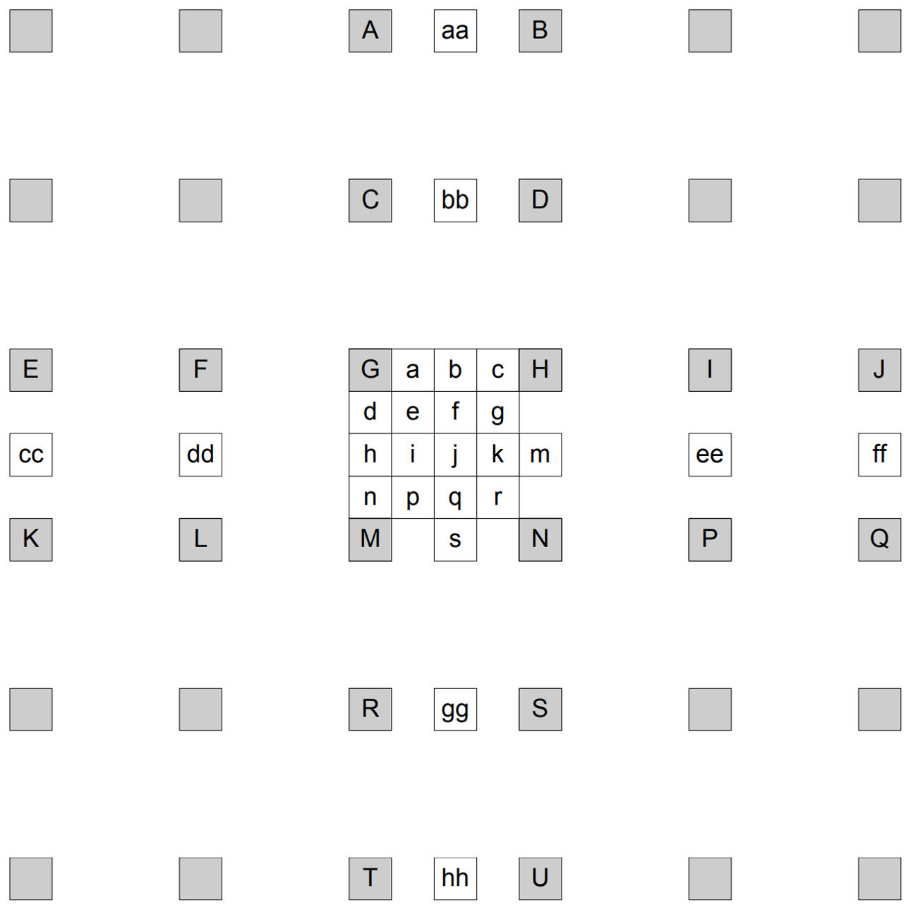 1/4像素位置a, c, d, n, f, i, k, q由行或列中相邻的整数像素点和1/2像素点求均值得到: