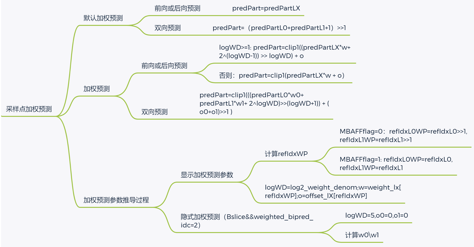 否则refIdxL0WP=refIdxL0, refIdxL1WP=refIdxL1 - 按下面公式得到亮度加权预测参数;