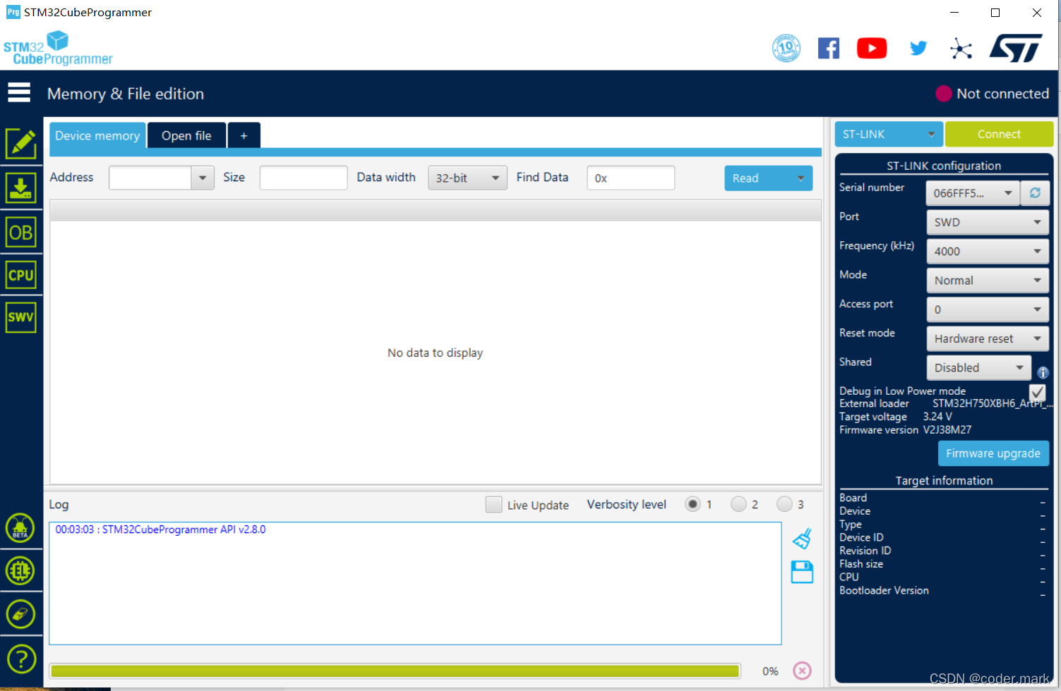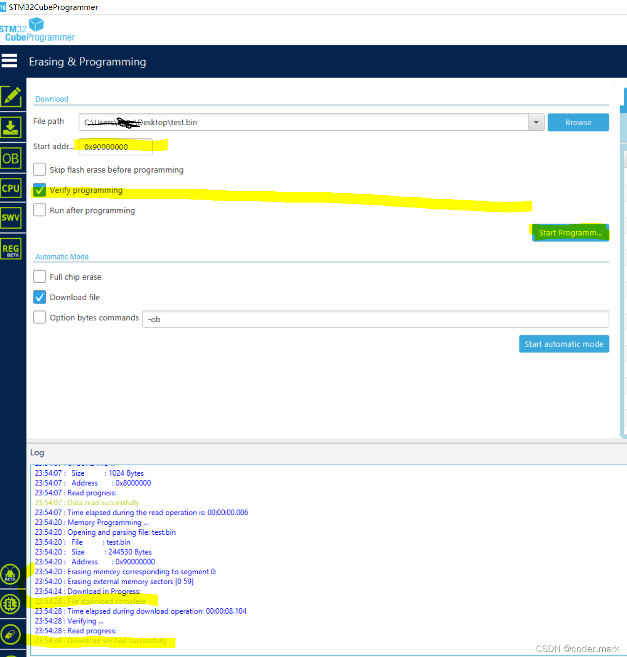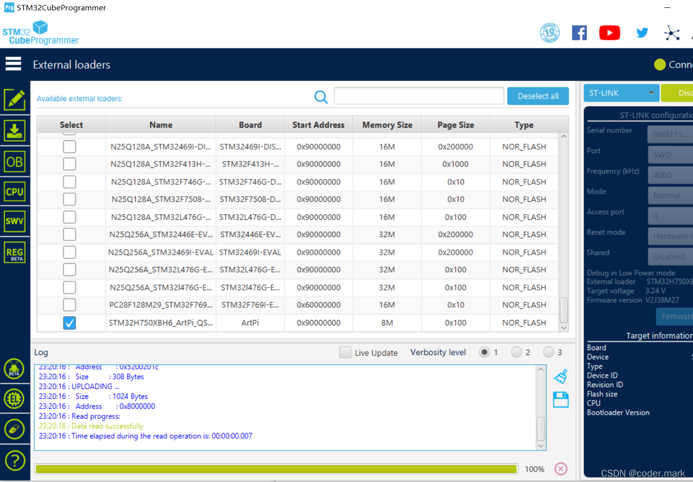 基于官网文档第2.3.2 External Flash memory programming的内容进行操作。