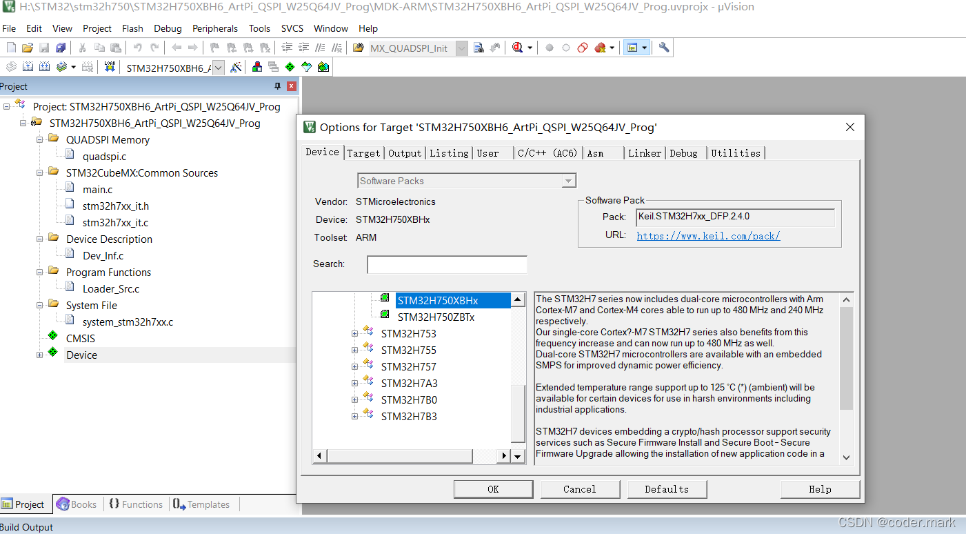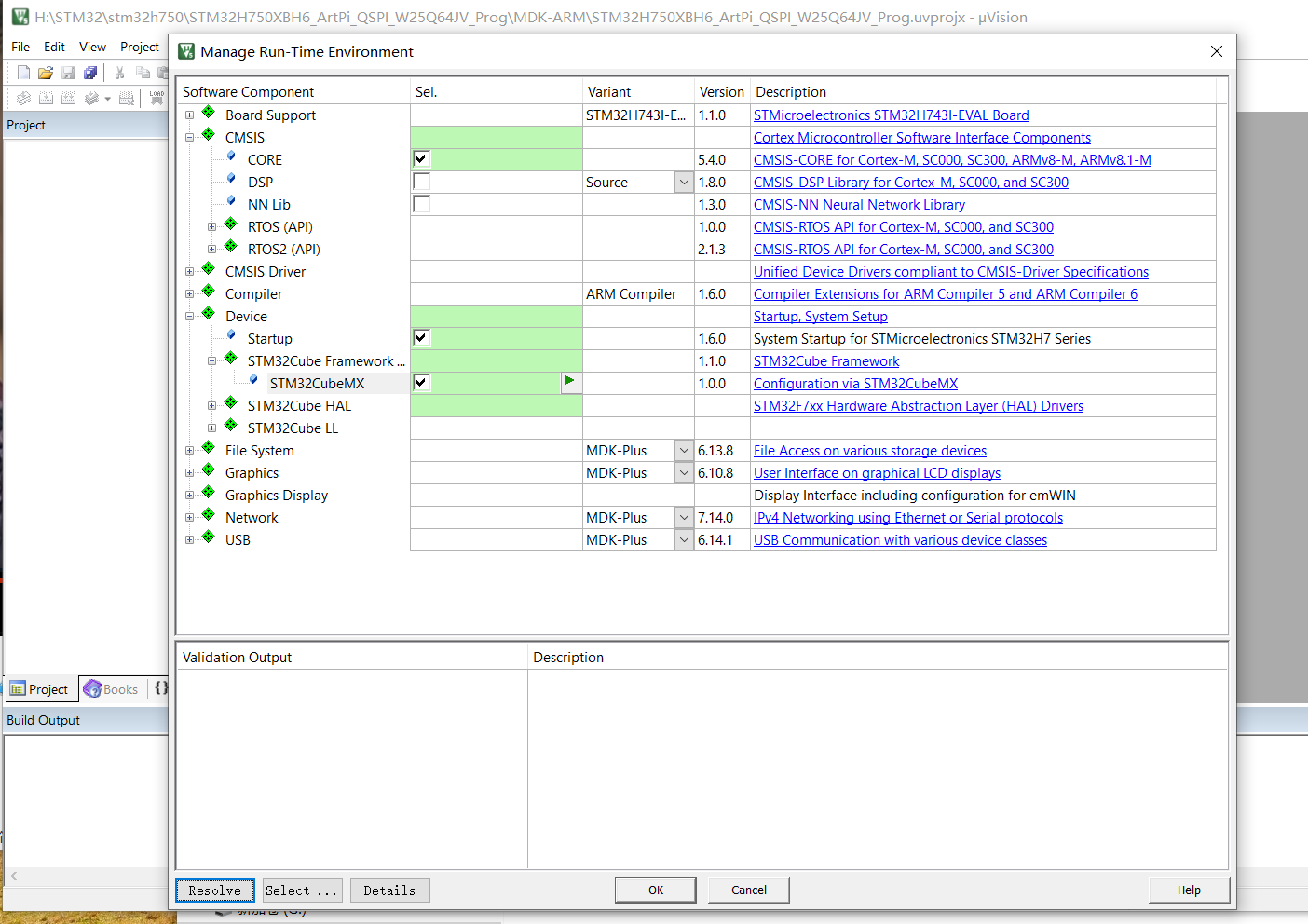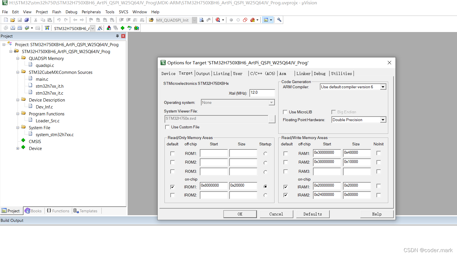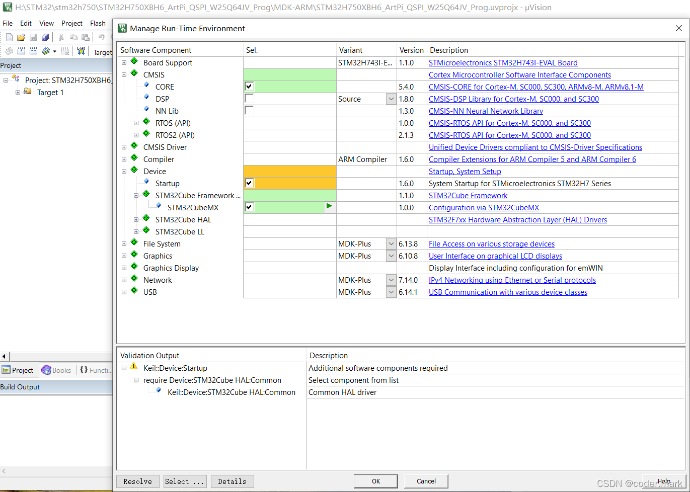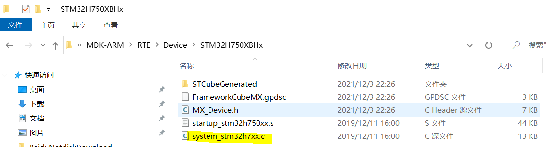 其中注意一下,System File分组的文件在工程文件夹STM32H750XBH6_ArtPi_QSPI_W25Q64JV_Prog\MDK-ARM\RTE\Device\STM32H750XBHx目录下