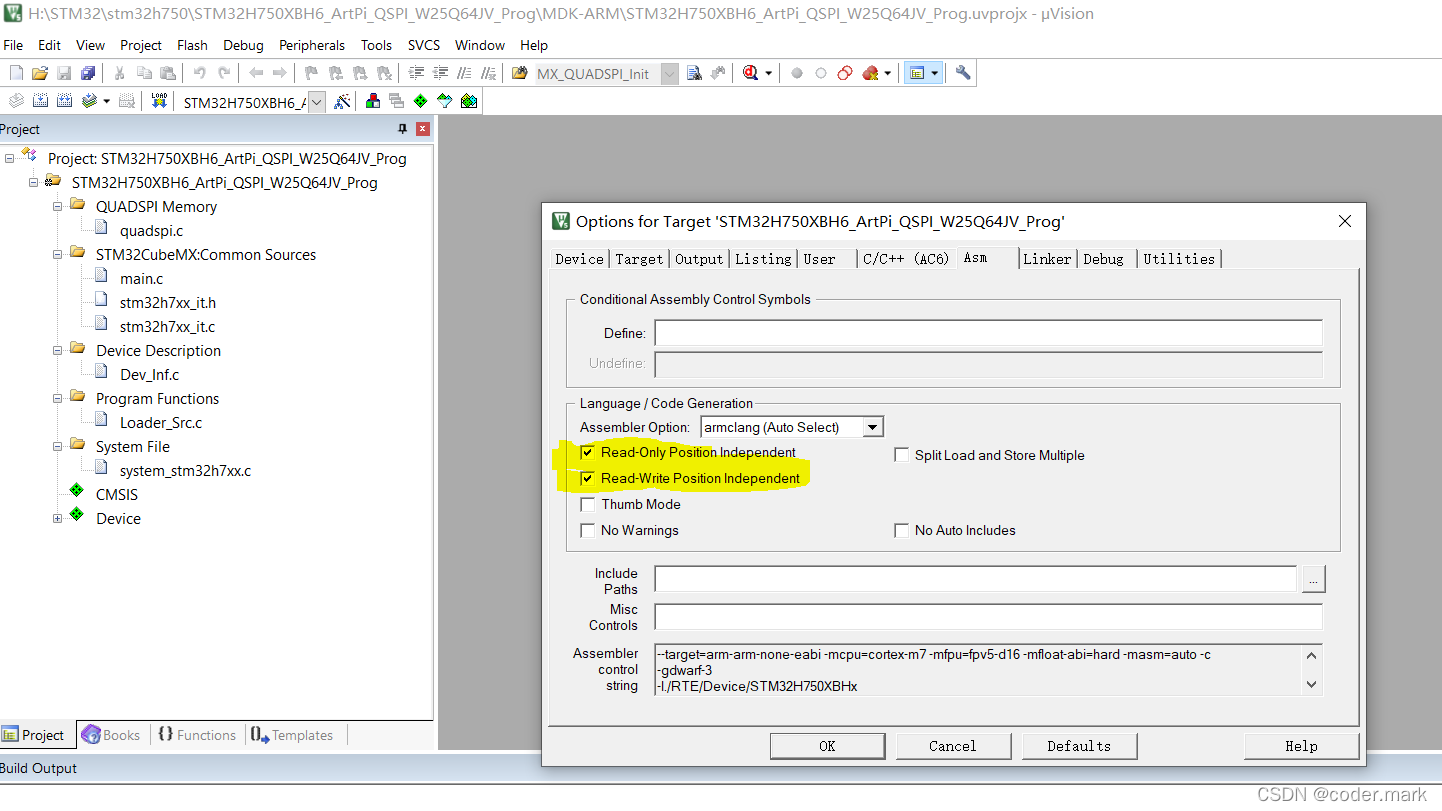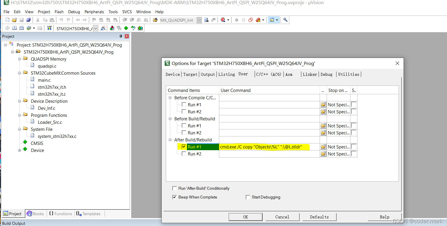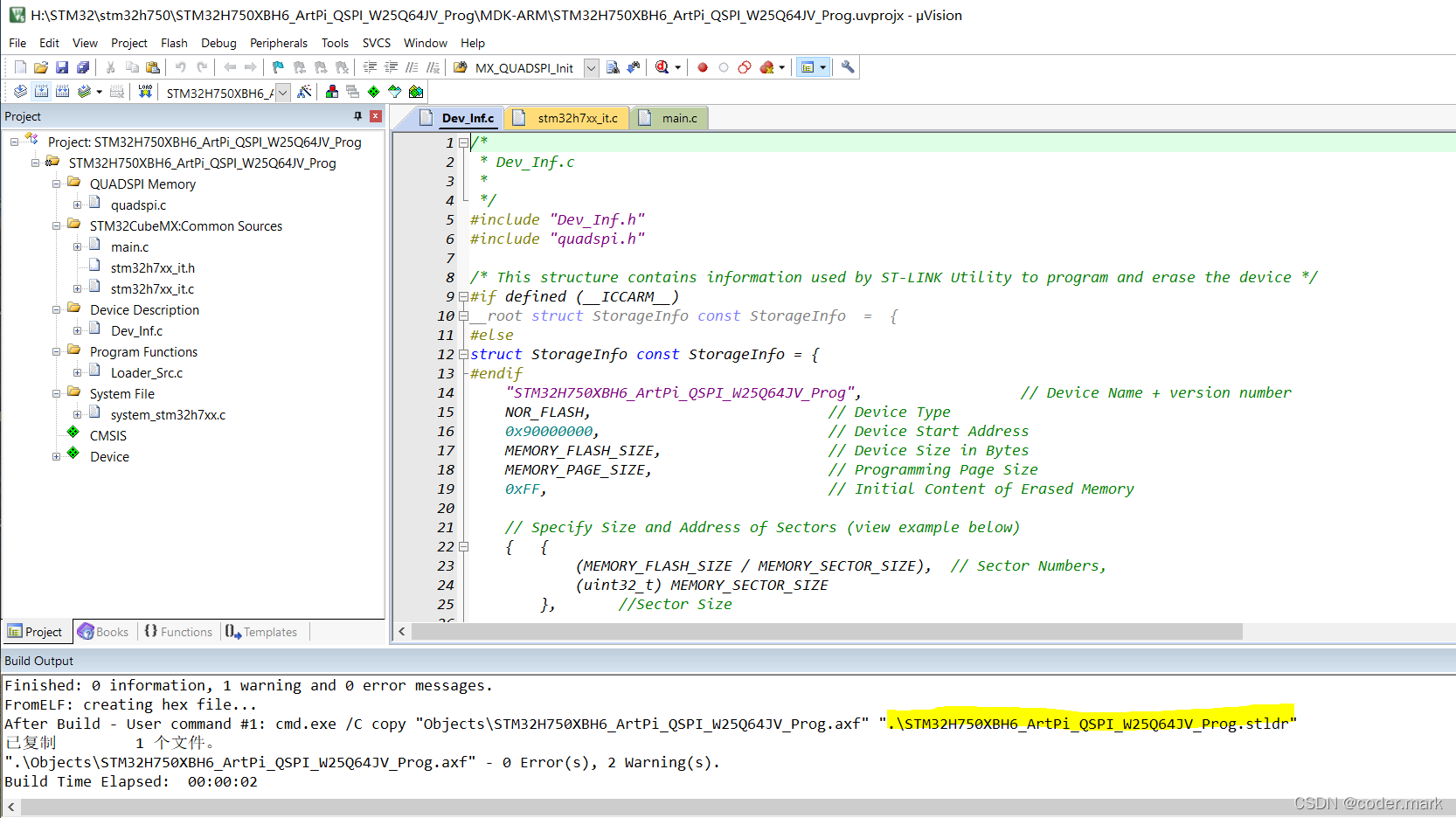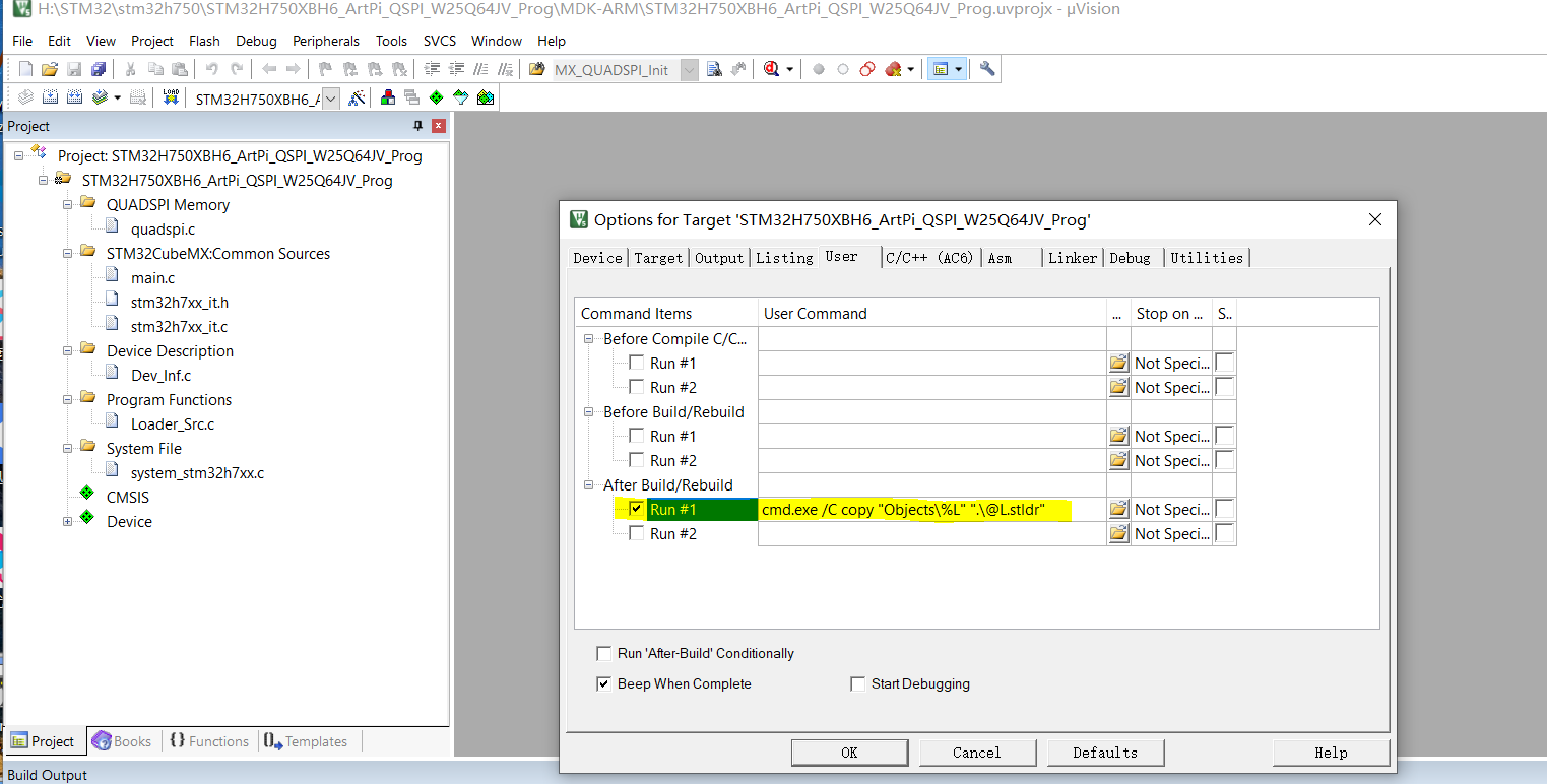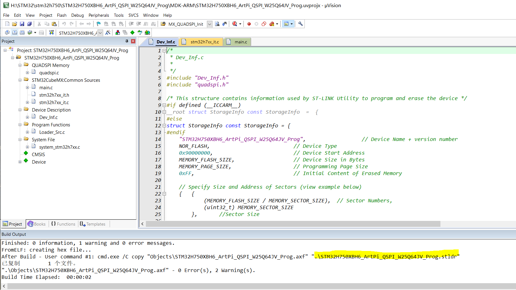 其中注意一下,System File分组的文件在工程文件夹STM32H750XBH6_ArtPi_QSPI_W25Q64JV_Prog\MDK-ARM\RTE\Device\STM32H750XBHx目录下