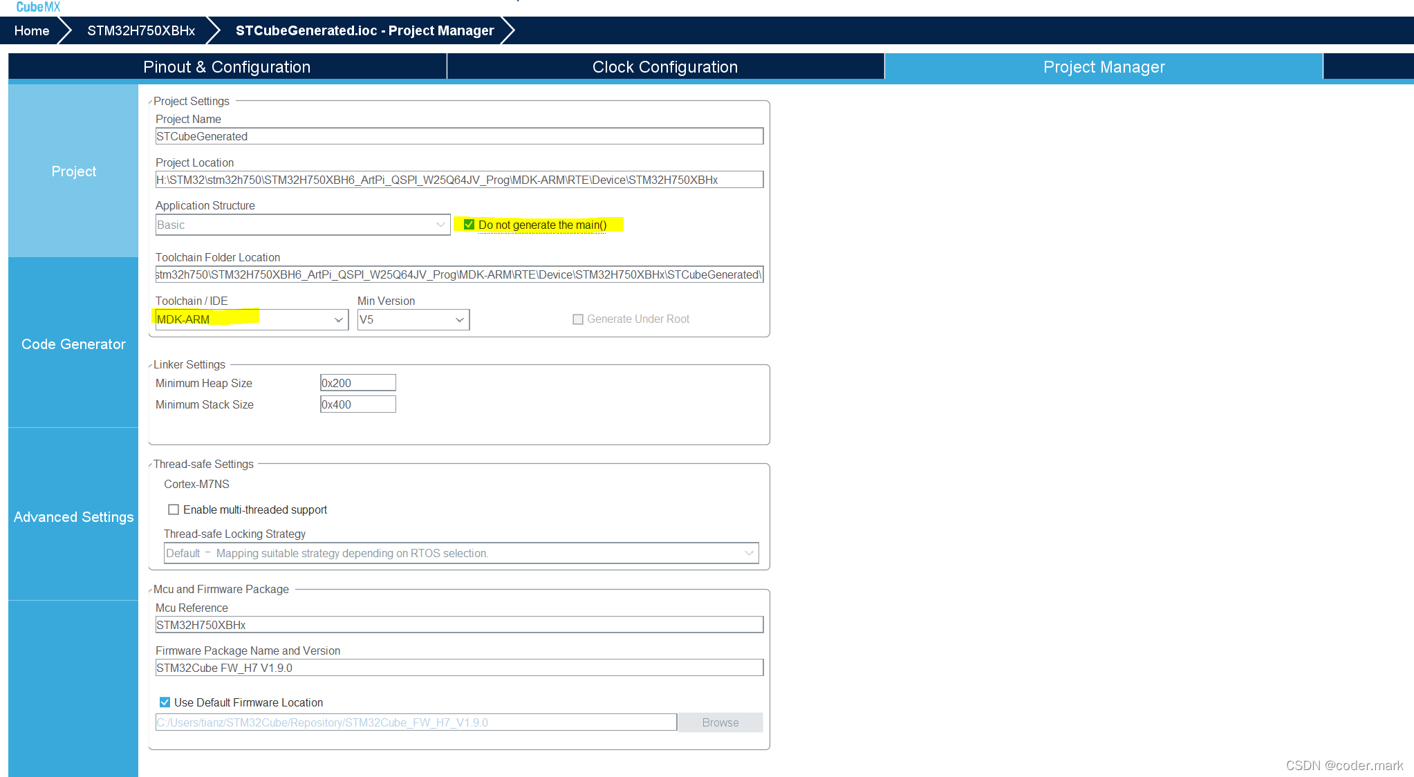 后来我换了一个思路,即先用Keil创建工程再用STM32CubeMX进行配置的方法,成功完成了本博文的目的。
