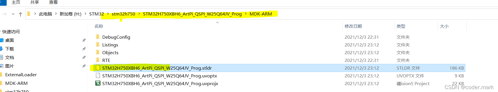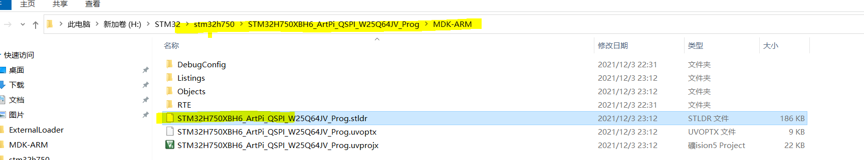 我们需要的下载算法文件即STM32H750XBH6_ArtPi_QSPI_W25Q64JV_Prog.stldr