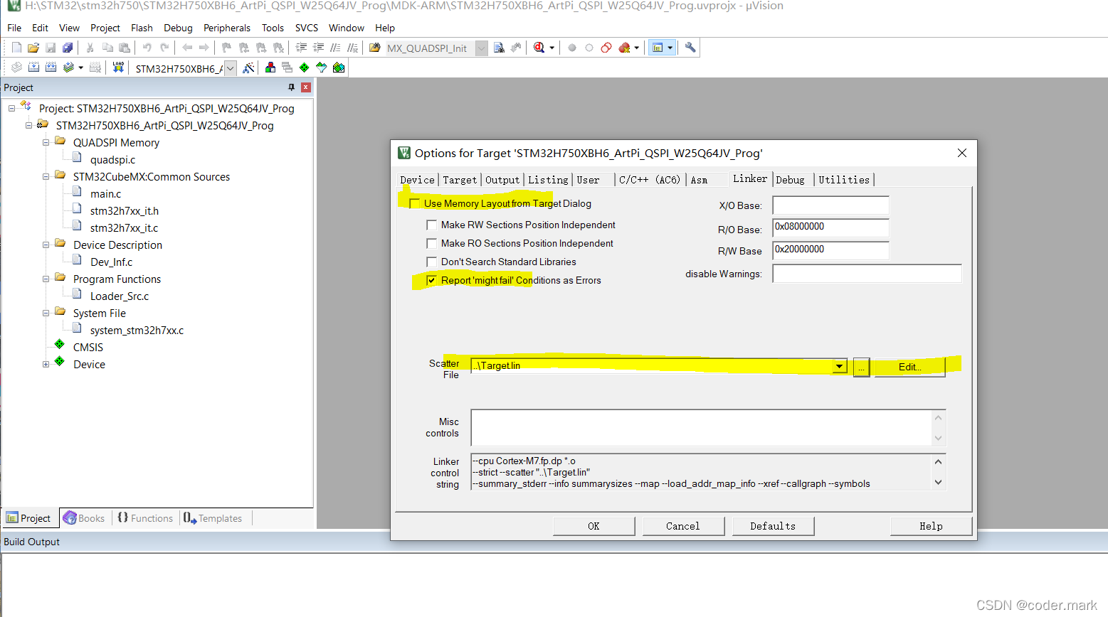 注意这边分散加载文件选择工程目录下的Target.lin,关于分散加载文件的知识点会在后面的博文中介绍。