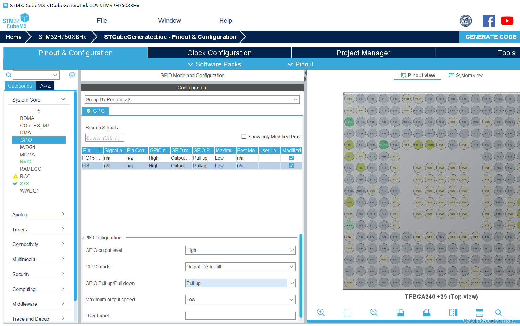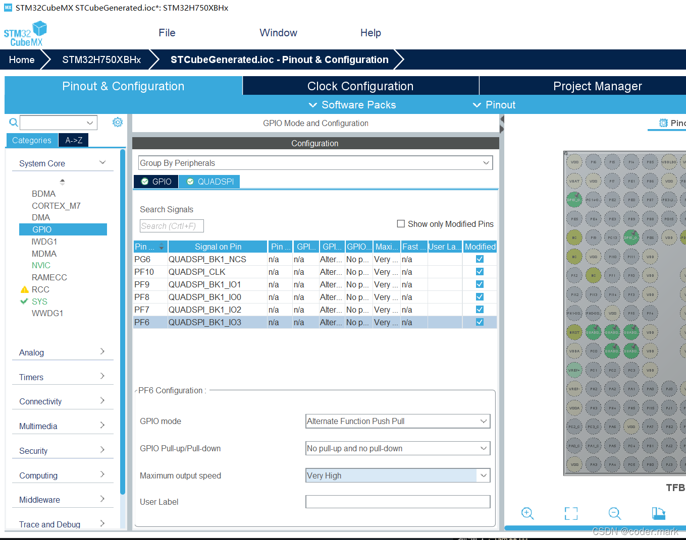 配置QUADSPI的IO如下图,注意时钟一定要选择Very High。