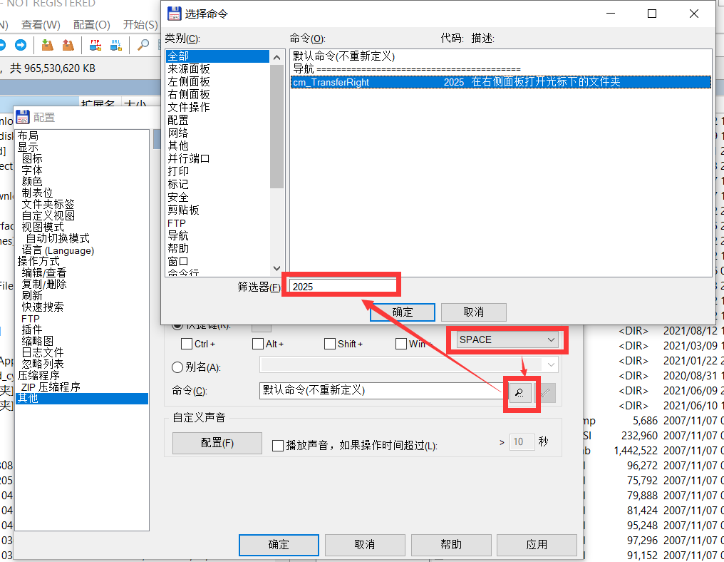 SPACE : 在右窗口打开光标下的文件夹【需进行配置】