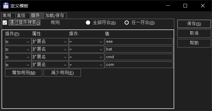 - 添加:命名 “ 可执行文件 ” → 定义→ 插件 → 如图 → 模板名:不要突出显示 → 确定 → 调成亮色(如红色)