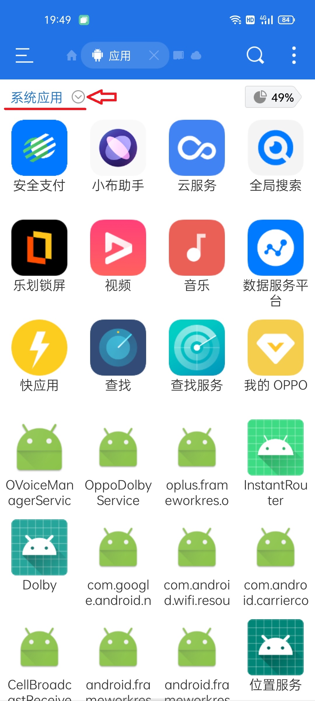 (4)从“系统应用”中找到你想卸载的应用并点击-->查看软件名