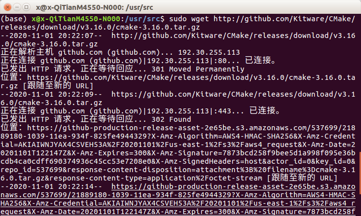 sudo wget https://github.com/Kitware/CMake/releases/download/v3.16.0/cmake-3.16.0.tar.gz