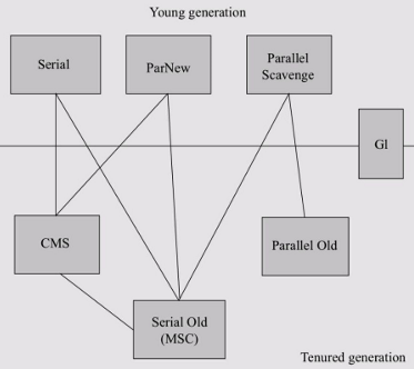 连线表示两个收集器可以配合使用,不连线,说明不兼容。