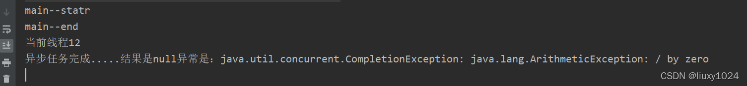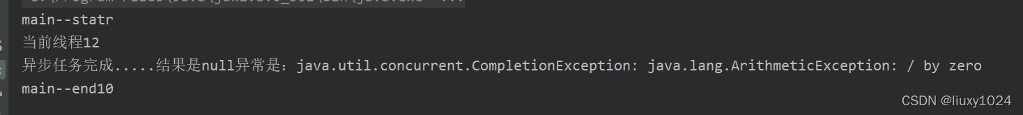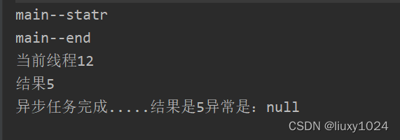 }我们继续链式调用,看到whenComplete有两个参数,前者是结果后者是异常,我们执行看结果。