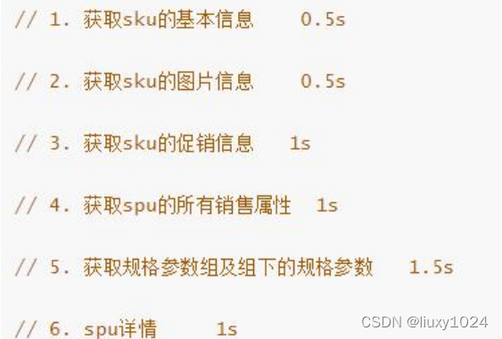 假如商品详情页的每个查询,需要如下标注的时间才能完成,那么,用户需要 5.5s 后才能看到商品详情页的内容。很显然是不能接受的。如果有多个线程同时完成这 6 步操作,也许只需要 1.5s 即可完成响应 。这时候我们需要异步,但是我们发现步骤1、2、3可以同时执行,但是步骤4需要步骤1完成后才可以执行,而5、6更依赖1的结果.其中的关系管理很复杂,CompletableFuture就显得很合适了。