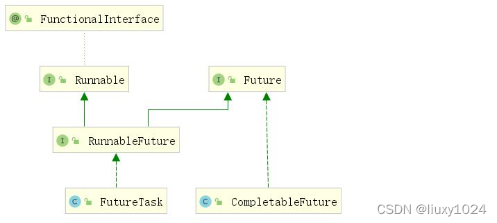 CompletableFuture 和 FutureTask 同属于 Future 接口的实现类,都可以获取线程的执行结果Future 是 Java 5 添加的类,用来描述一个异步计算的结果。你可以使用`isDone`方法检查计算是否完成,或者使用`get`阻塞住调用线程,直到计算完成返回结果,你也可以使用`cancel` 方法停止任务的执行。
