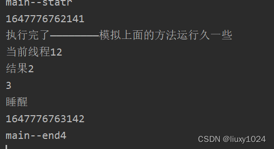 System.out.println("线程1的结果" + res);