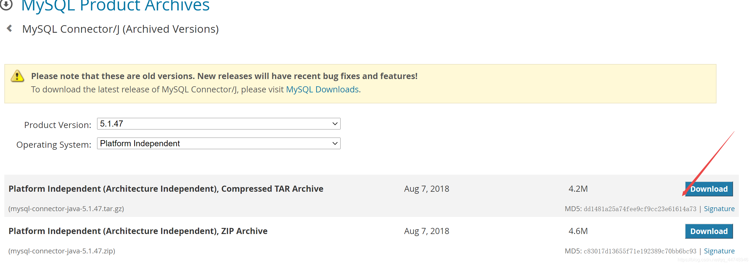 按照自己MySQL的版本进行匹配下载,在这自己的MySQL是5.7.19