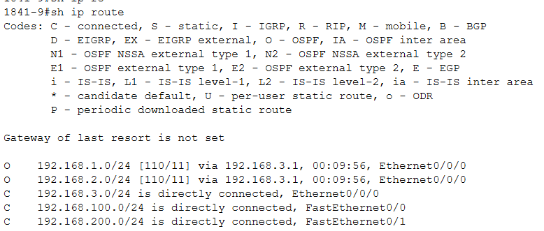 network 192.168.3.0 0.0.0.255 area 0配置完成后,查看路由表: