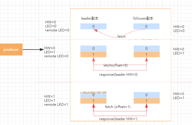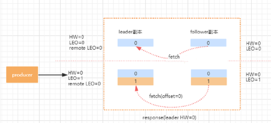 kafka使用HW和LEO的方式来实现副本数据的同步,本身是一个好的设计,但是在这个地方会存在一个数据的丢失问题,当然这个丢失只出现在特定的背景下。我们回想一下,HW的值是在新的一轮FETCH中才会被更新。我们分析下这个过程为什么会出现数据丢失