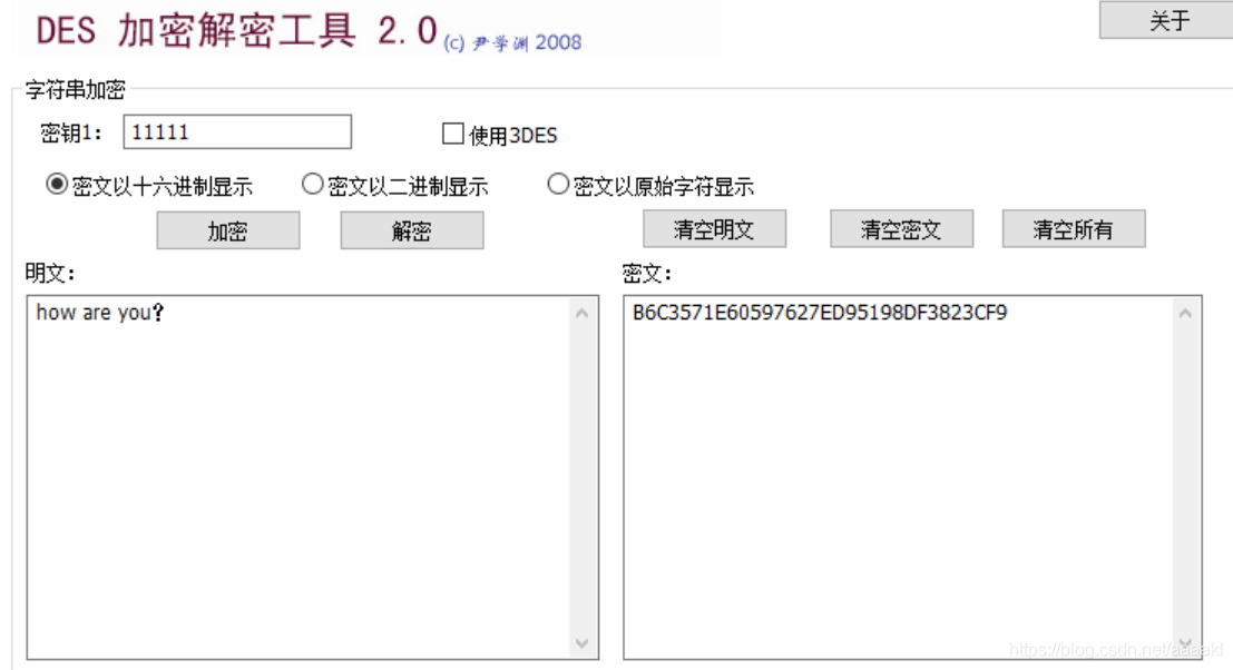 - 打开DES Tool,使用约定好的密钥对明文加密。