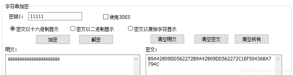- 输入明文,进行3DES加密,得到密文,记录密文。