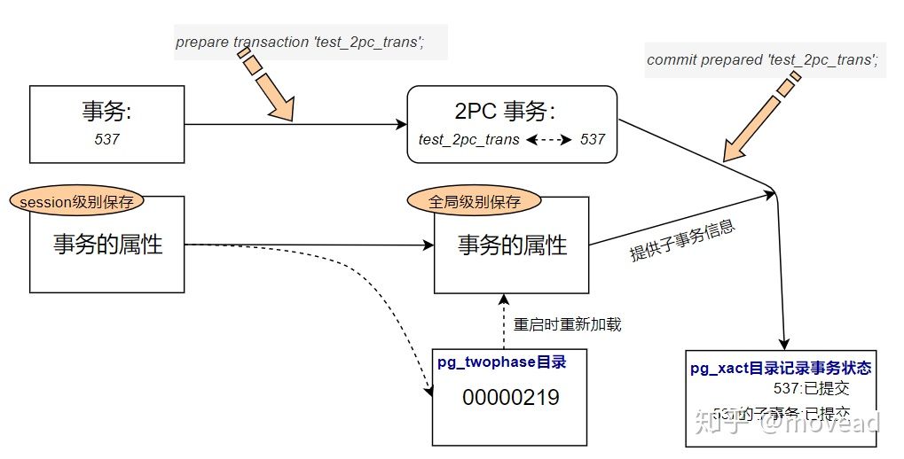 movead@movead-PC:/h2/data/pg_twophase$如上00000219文件就是为2PC事务537创建的存储文件,PostgreSQL如果发生重启,在恢复到正常状态之前会从pg_twophase目录加载所有的2PC事务到内存中。