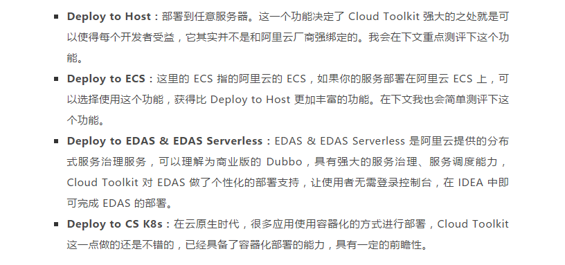 官方的介绍为: Cloud Toolkit 是本地 IDE 插件,帮助开发者更高效地开发、测试、诊断并部署应用。通过插件,可以将本地应用一键部署到任意服务器,甚至云端(ECS、EDAS、Kubernetes 和 小程序云 等);并且还内置了 Arthas 诊断、Dubbo工具、Terminal 终端、文件上传和 MySQL 执行器等工具。
