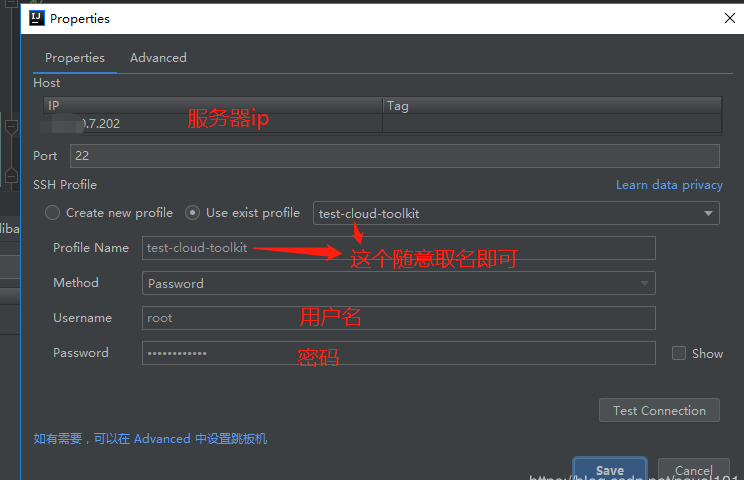 点击右上角的Add Host,弹出如下框,填上服务器相关参数,保存即可.