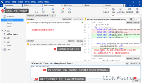 注意:如果有待拉取内容,一定要先拉取再提交/推送,避免代码冲突