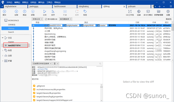 这样分支就创建了,创建完成后左侧会出现,双击可以切换当前分支,在master分支改了代码,切换到test20211014分支的时候不会出现master上改的代码,互不影响,只有在开发完了,提交推送合并分支的时候生效,所以本地开发要注意当前分支。