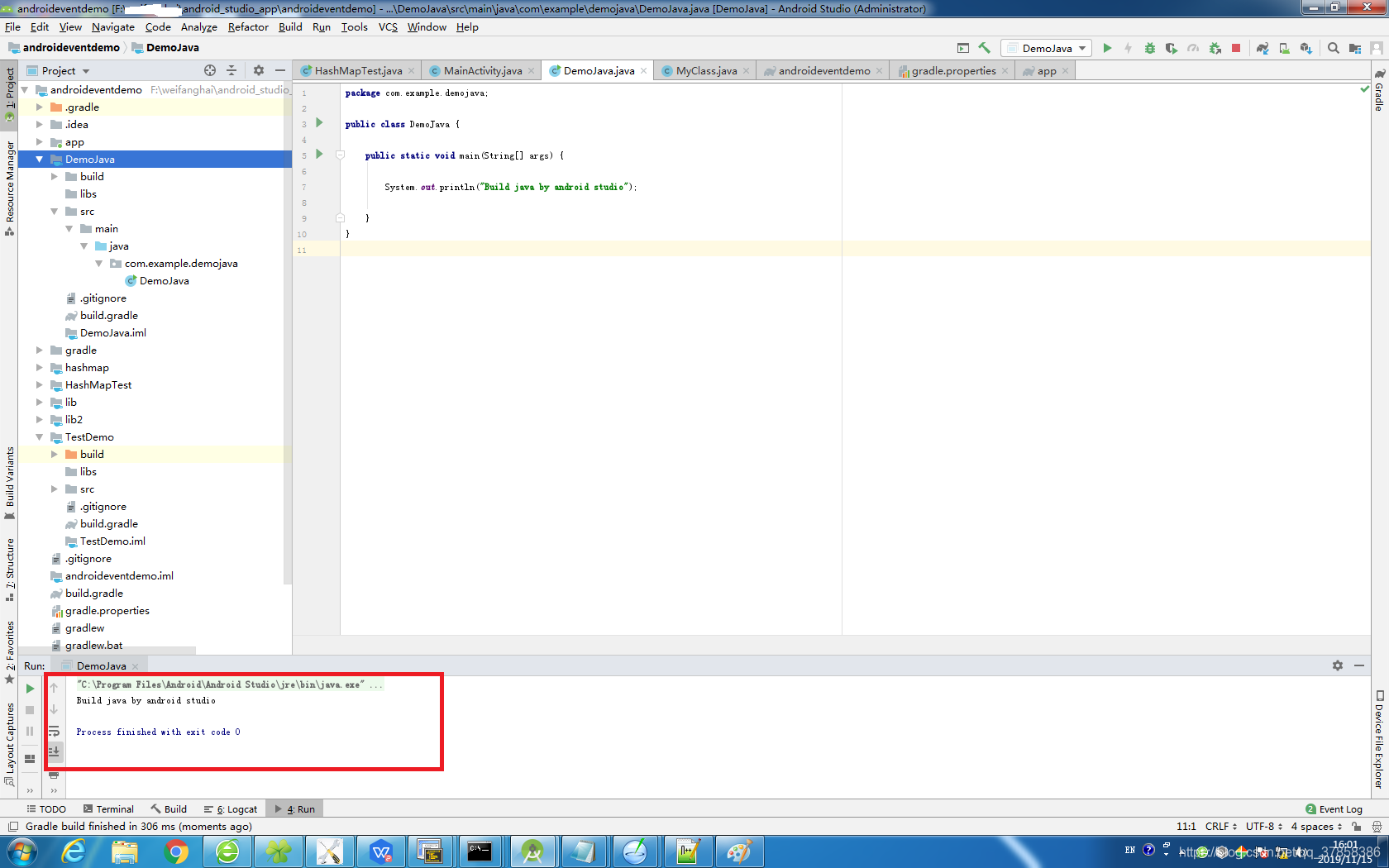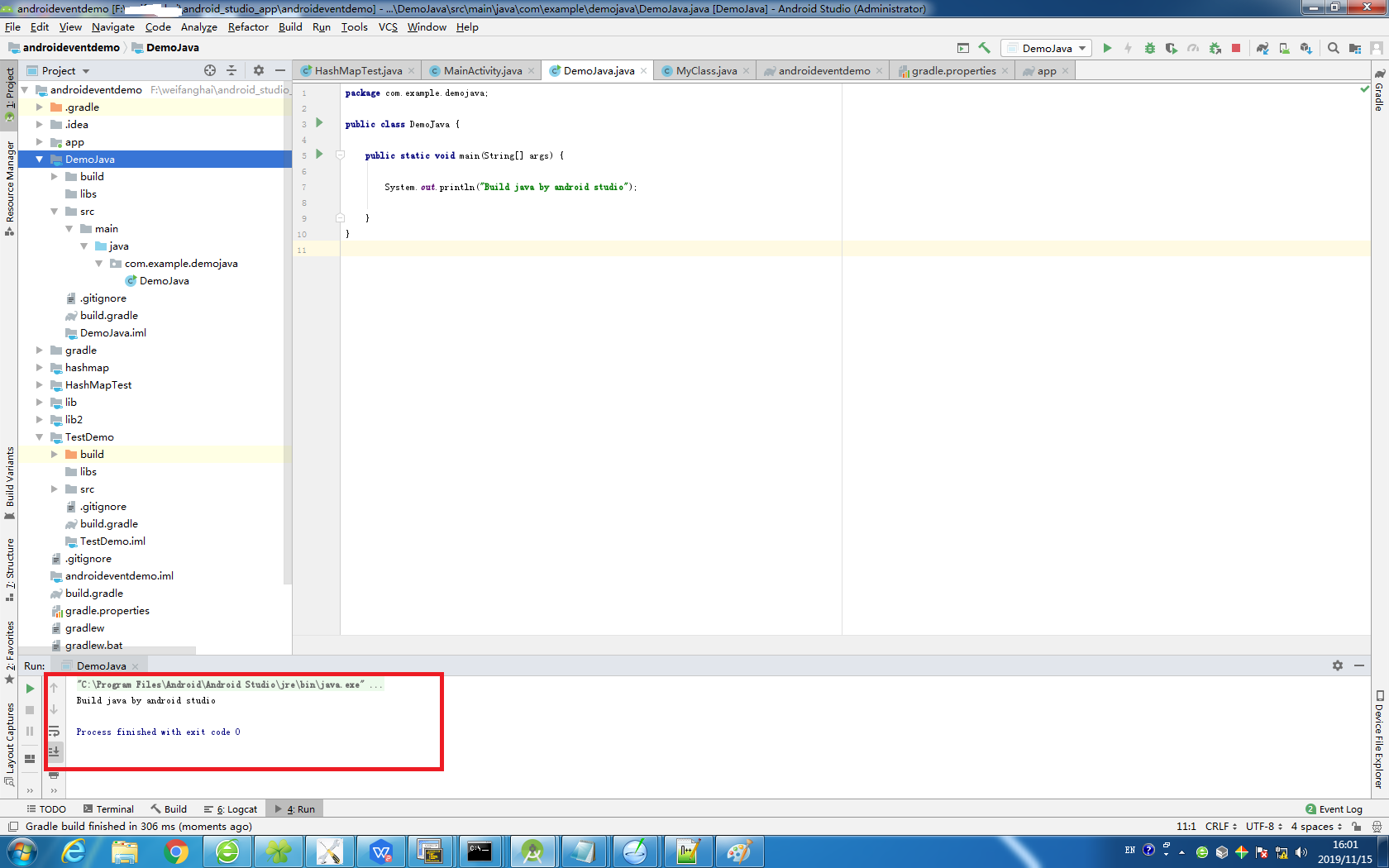 6、查看运行的结果,有对应的打印信息,可以编译java文件了。