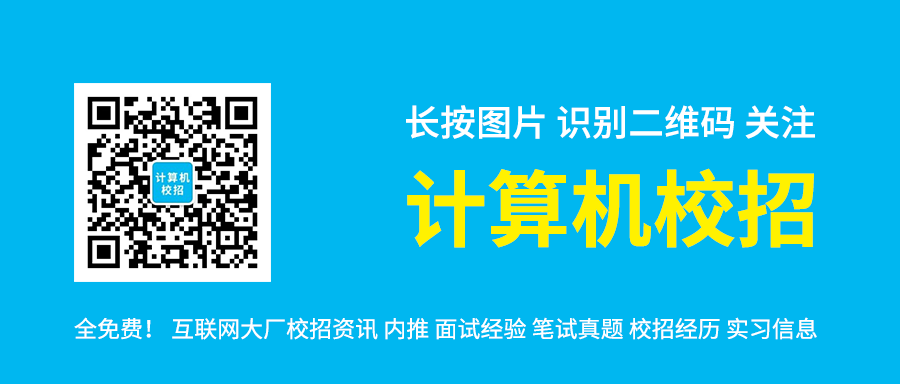微信公众号 “计算机校招”,每天都会更新最新的“互联网/计算机/科技类 公司” 校园招聘信息,欢迎关注!