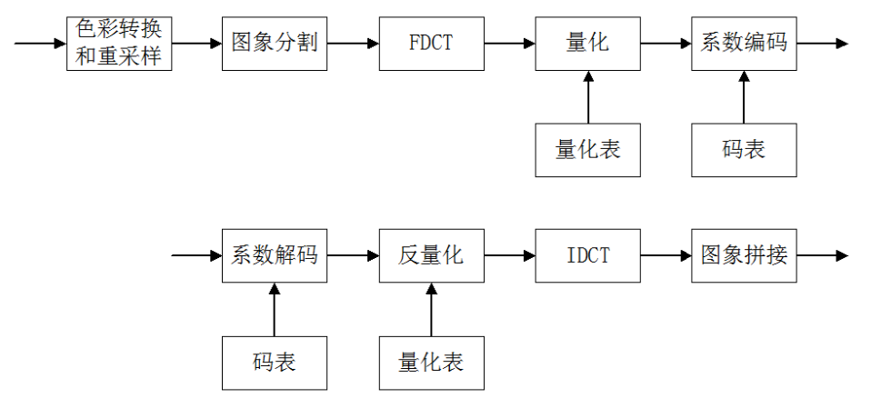 下图是JPEG压缩/解压缩的流程图。我想你最大的疑问估计就是DCT了。