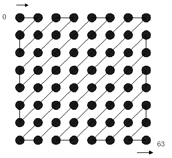 ZIG-ZAG排序:为使连续的0个数增多,采用Z形编码。