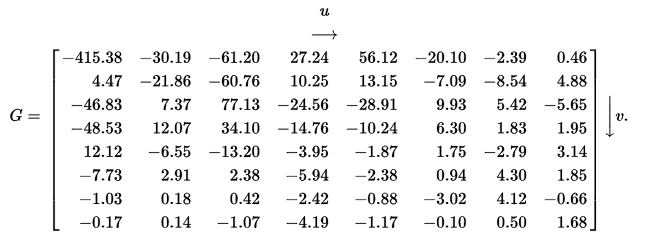 称G(0,0),也就是输出8x8矩阵的(0,0)坐标的值,为直流系数,其他为交流系数。