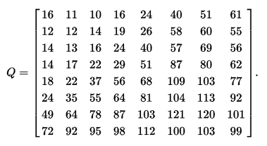 JPEG系统分别规定了亮度分量和色度分量的量化表,色度分量相应的量化步长比亮度分量大。